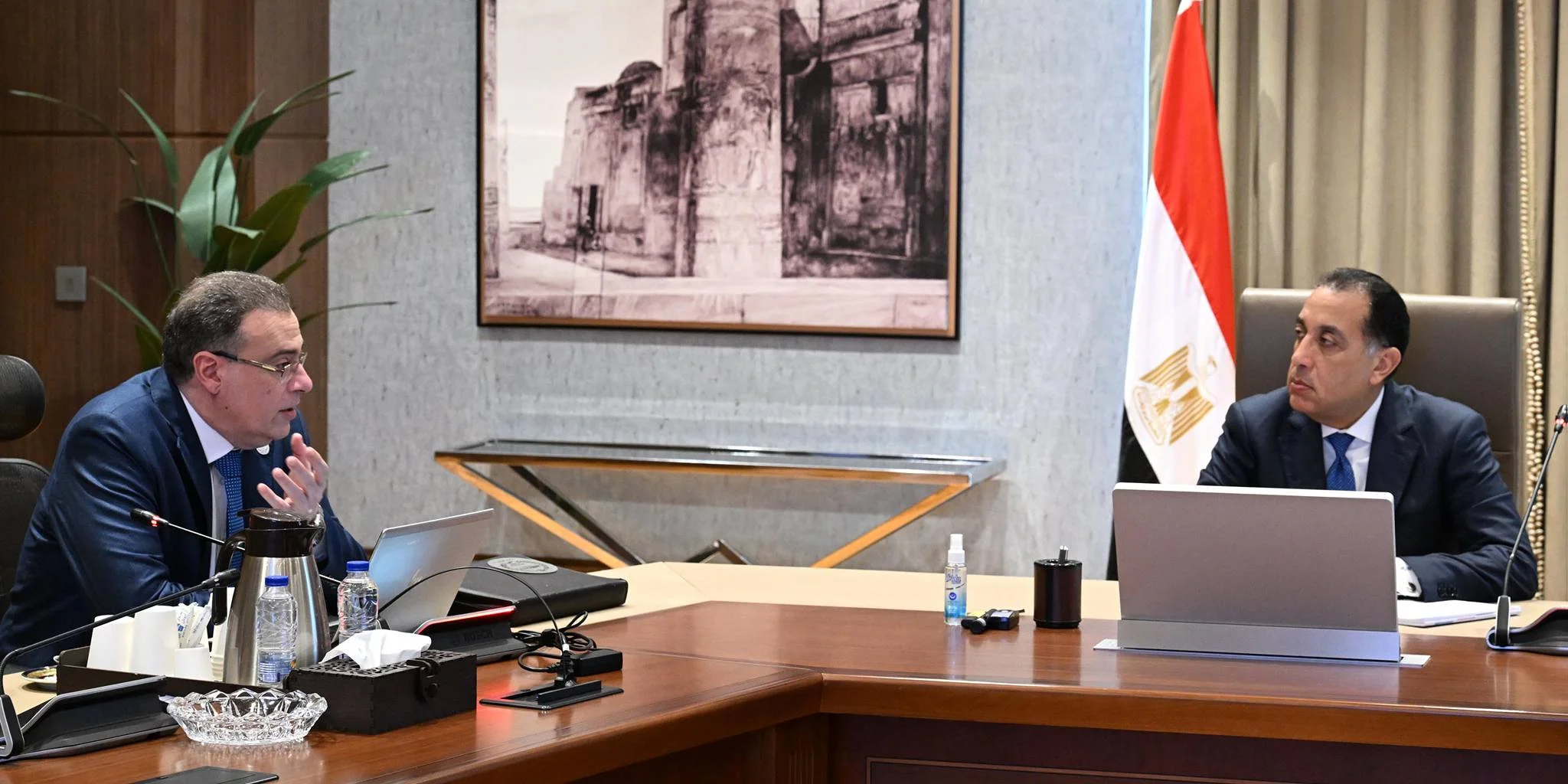 التقى الدكتور مصطفى مدبولي، رئيس مجلس الوزراء، اليوم؛ بمقر الحكومة بالعاصمة الجديدة، المهندس حاتم نبيل، رئيس الجهاز المركزي للتنظيم والإدارة، لمتابعة عدداً من ملفات العمل.