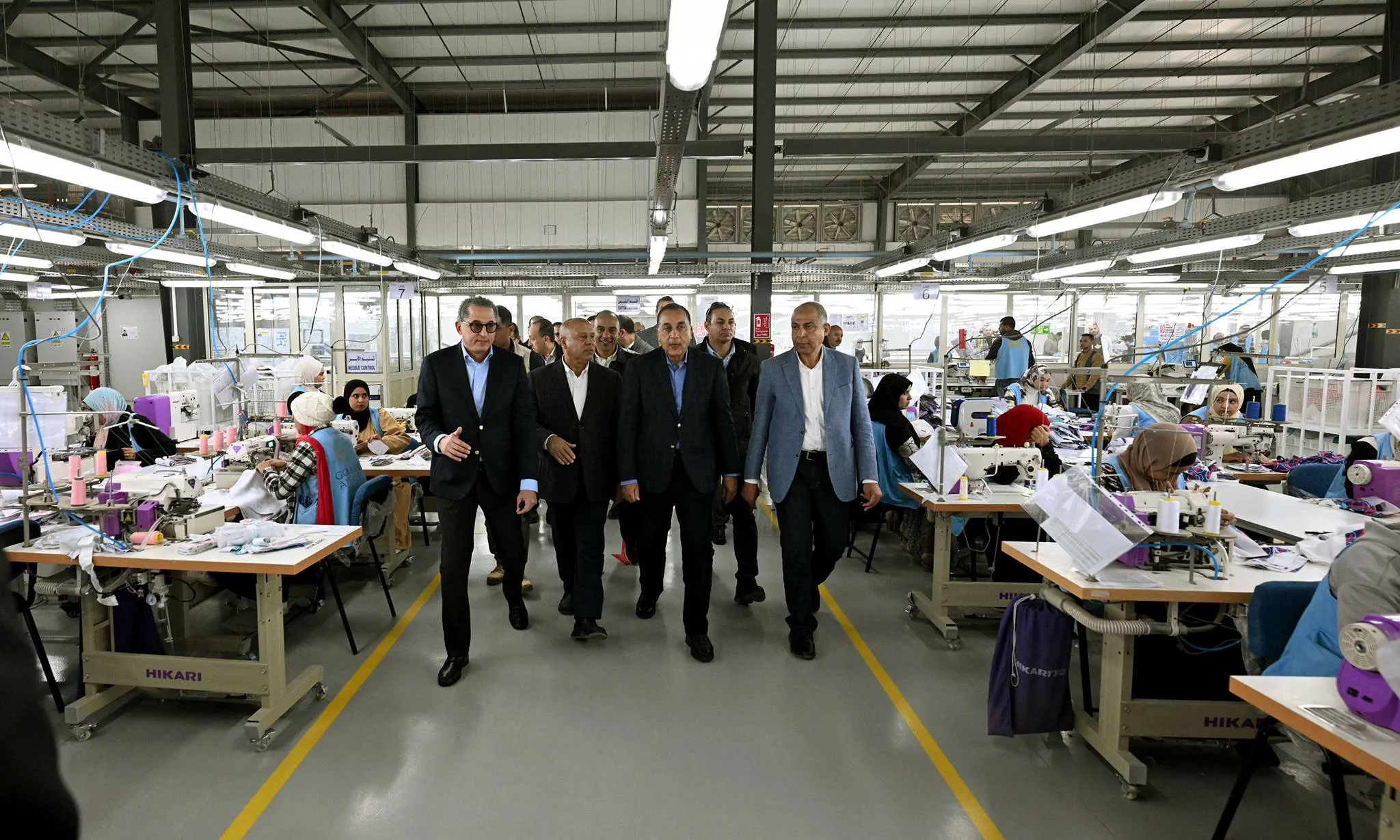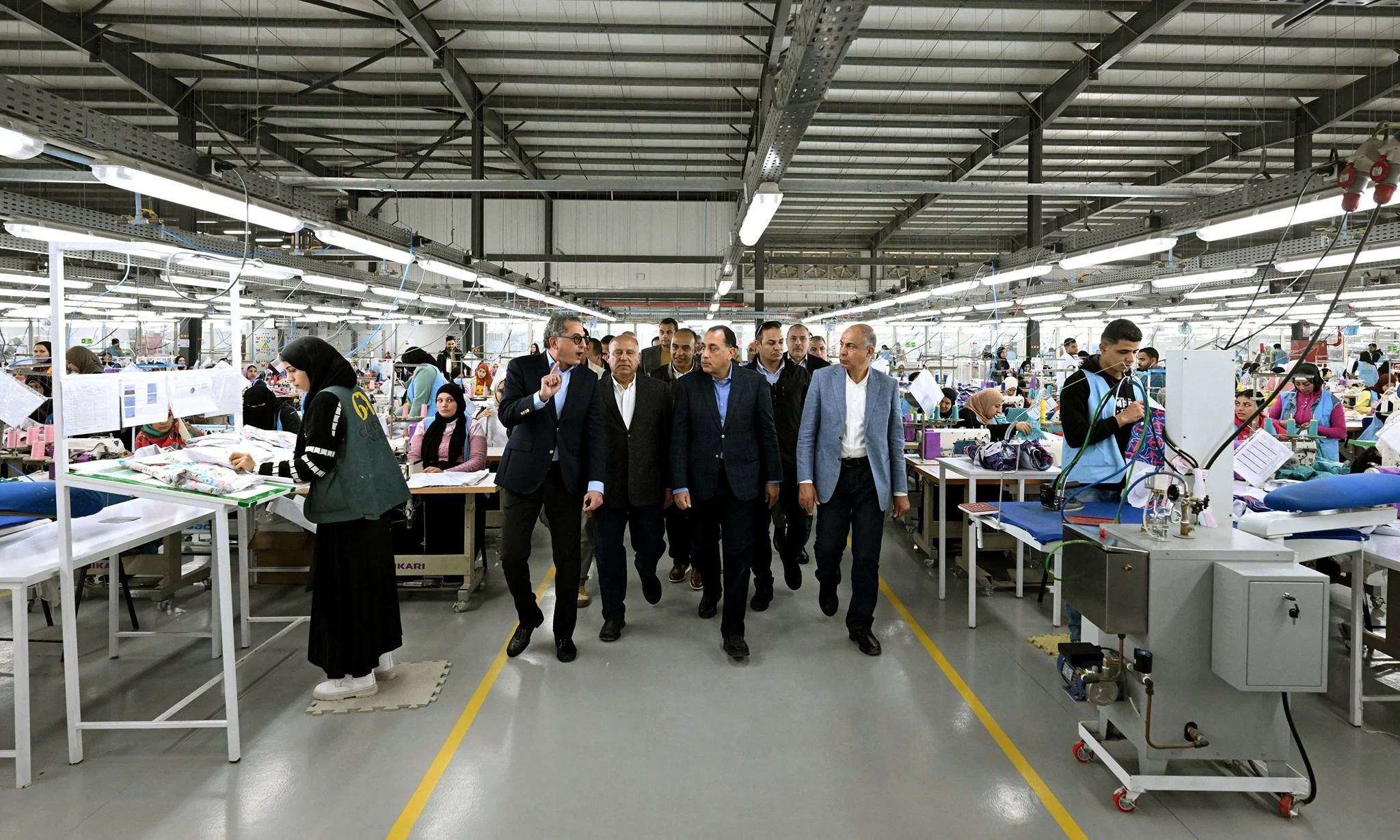 تفقد الدكتور مصطفى مدبولي، رئيس مجلس الوزراء، ومرافقوه، مصنع الجيزة للملابس الجاهزة، أثناء جولته اليوم بمشروعات تنموية وخدمية بمحافظة المنيا.