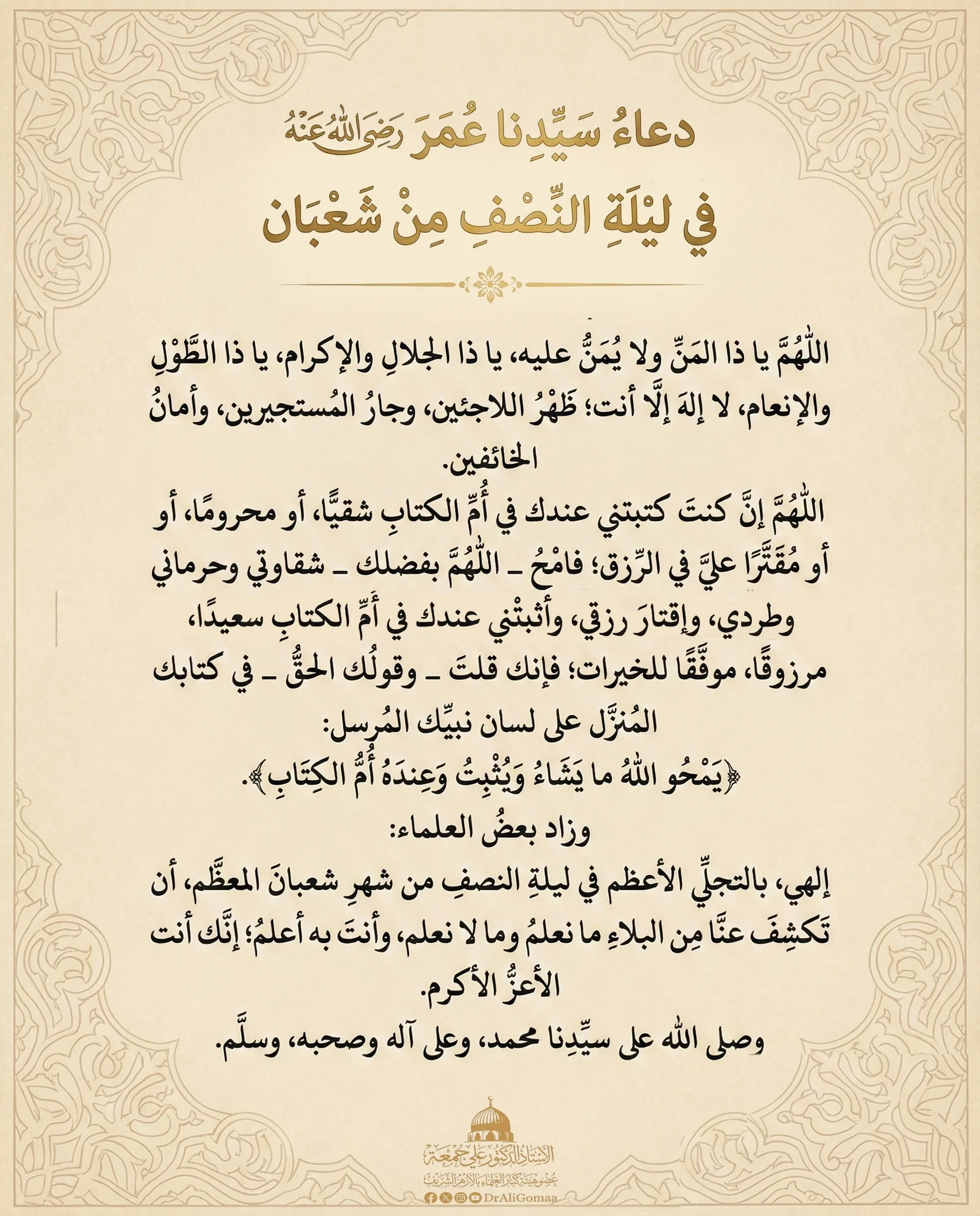 دعاءُ سيِّدِنا عُمَرَ رَضِيَ اللَّهُ عَنْهُ في ليلةِ النِّصْفِ مِن شَعْبَان