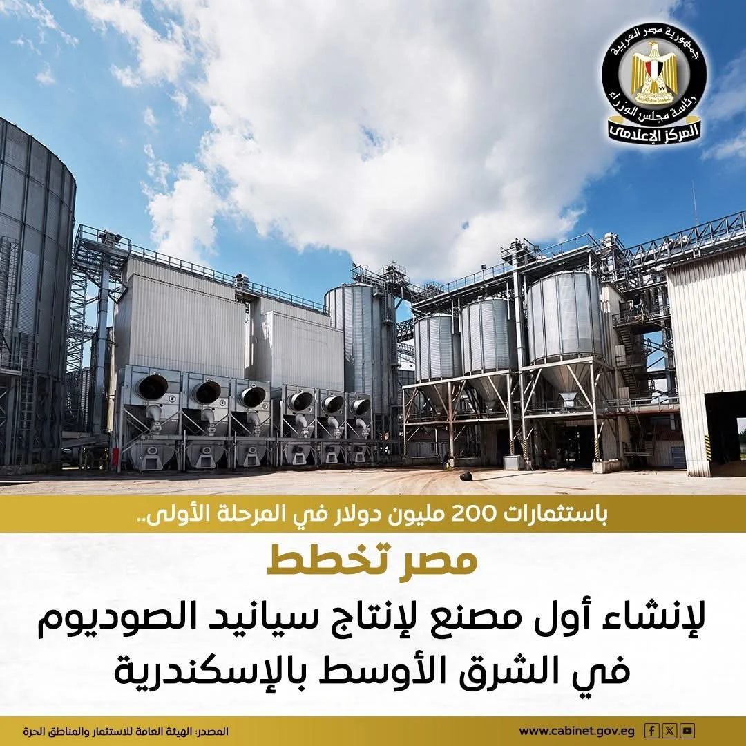 باستثمارات 200 مليون دولار.. مصر تخطط لإنشاء أول مصنع لإنتاج سيانيد الصوديوم في الشرق الأوسط بالإسكندرية
