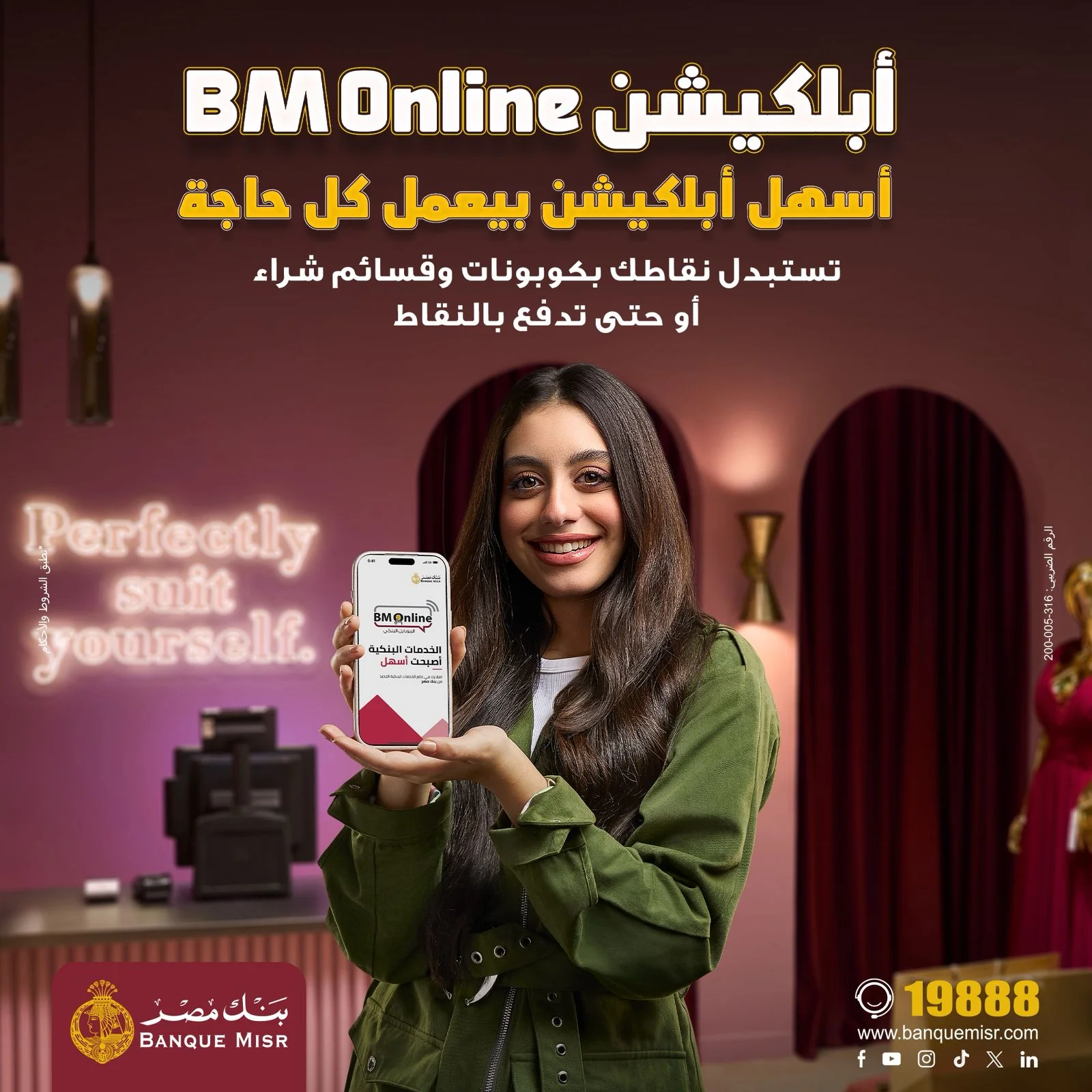 ويواصل بنك مصر من خلال تطبيق BM Online تحديث وتطوير خدماته الرقمية، دعمًا لاستراتيجية التحول الرقمي، وترسيخًا لمكانته كأحد أبرز المؤسسات المصرفية الرائدة في الابتكار وتقديم تجربة مصرفية متكاملة وآمنة ترتقي لتطلعات عملائه.