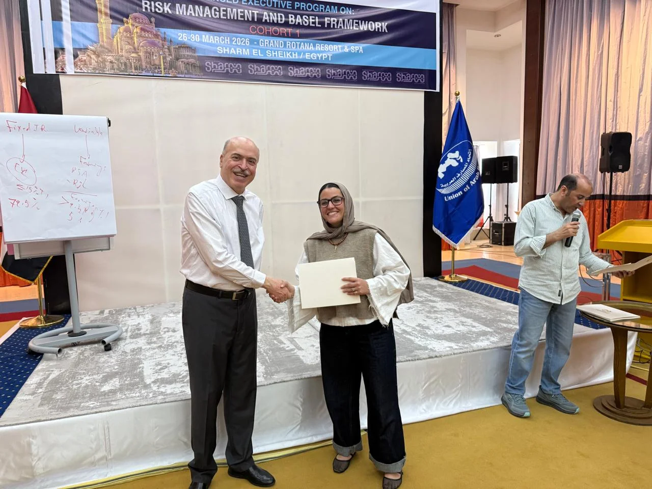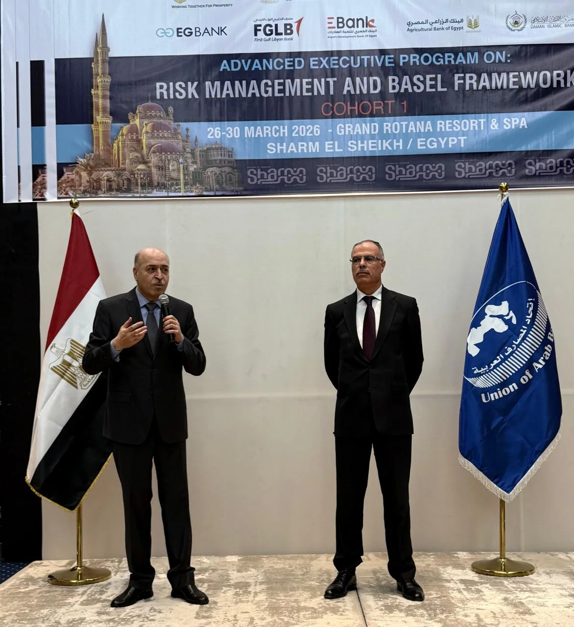اختتمت اليوم فعاليات حلقة العمل الأولى من “الدبلوم المتقدم في إدارة المخاطر المصرفية وتطبيقات بازل” والذي عقده اتحاد المصارف العربية في مدينة شرم الشيخ ، خلال الفترة من 26-30 مارس 2026 ولمدة 5 أيام وبإجمالي 25 ساعة تدريبية، ويمتد هذا الدبلوم لأربع حلقات 100 ساعة تدريبية.