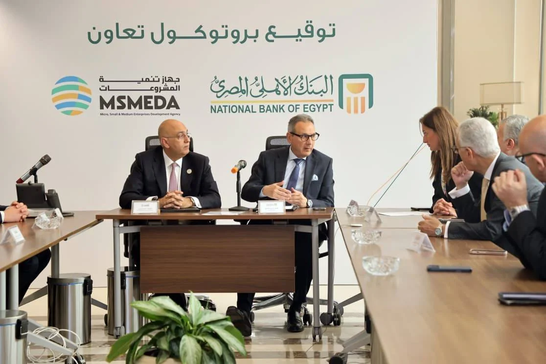 وقّع محمد الإتربي الرئيس التنفيذي للبنك الأهلي المصري مذكرة تفاهم مع باسل رحمي الرئيس التنفيذي لجهاز تنمية المشروعات المتوسطة والصغيرة ومتناهية الصغر. وحضر التوقيع كلُّ من سهى التركي نائبة الرئيس التنفيذي للبنك الأهلي المصري ونادر سعد رئيس المشروعات الصغيرة والمتوسطة التنفيذي بالبنك الأهلي المصري، ومحمد مدحت نائب الرئيس التنفيذي لجهاز تنمية المشروعات والدكتور رأفت عباس المشرف على قطاعات التنمية بالجهاز وسامح جويدة رئيس قطاع الإعلام بالجهاز ولفيف من قيادات البنك والجهاز.