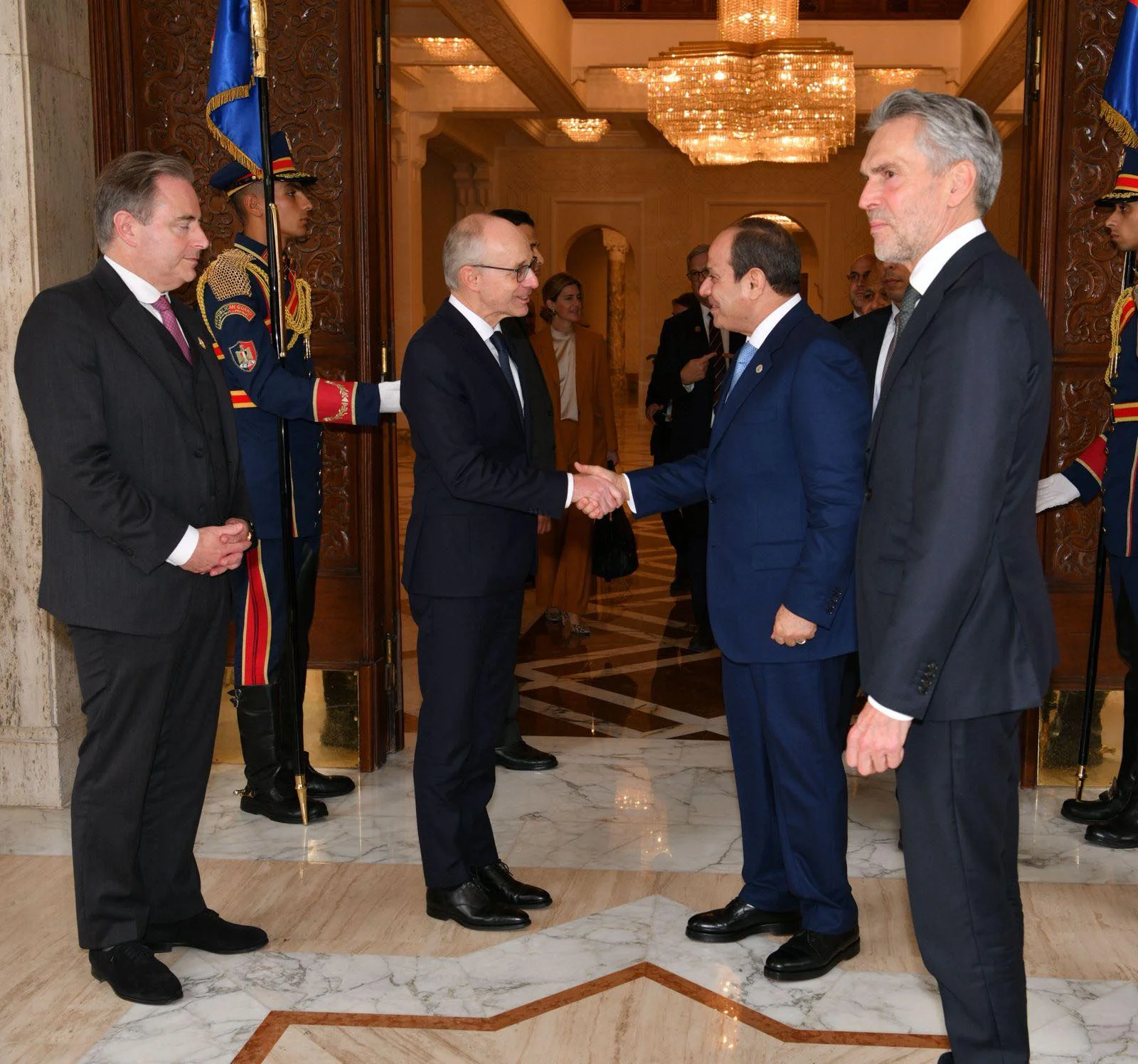 استقبل الرئيس عبد الفتاح السيسي، اليوم الأحد، كلاً من لوك فريدن رئيس وزراء دوقية لوكسمبورج، وديك سخوف رئيس وزراء مملكة هولندا، وبارت دي فيفر رئيس وزراء مملكة بلجيكا، وذلك بحضور الدكتور بدر عبد العاطي وزير الخارجية والهجرة وشؤون المصريين في الخارج، ومن جانب لوكسمبورج كريستيان مولر سفير دوقية لوكسمبورج في القاهرة، ومن الجانب الهولندي بيتر موليما سفير مملكة هولندا بالقاهرة، وهيلين ستيرجيو مستشار الشؤون الخارجية ومنسق الدفاع، ومن الجانب البلجيكي جيرون بيتورز، مسؤول الشؤون السياسية بسفارة مملكة بلجيكا بالقاهرة.