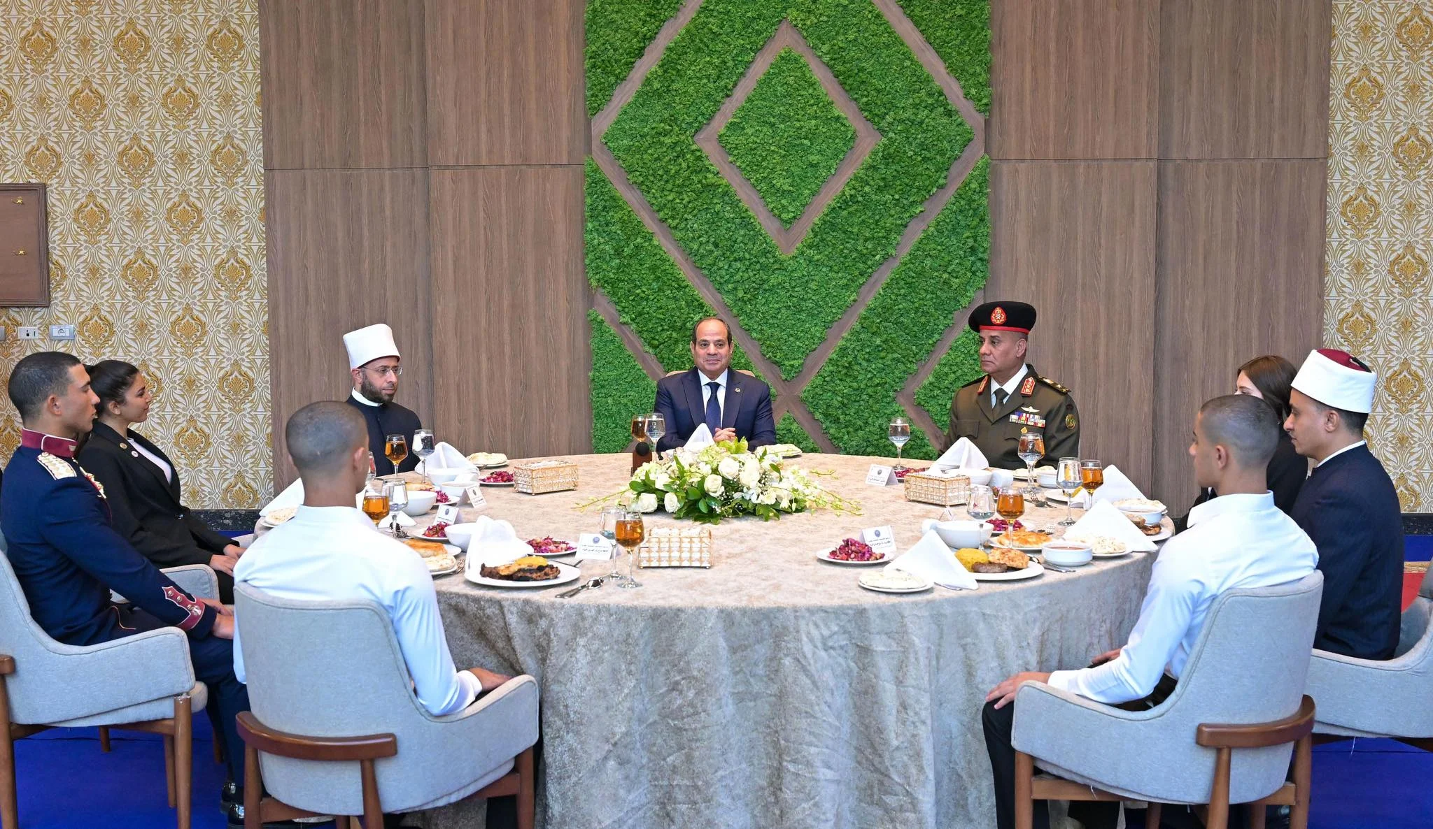 وذكر المتحدث الرسمي أن الرئيس السيسي،تناول وجبة الغداء مع مدير الأكاديمية العسكرية المصرية، ومديري الكليات العسكرية، ووزير الأوقاف، والطلبة الدارسين بالأكاديمية، حيث دار نقاش تفاعلي بين السيد الرئيس وطلبة الأكاديمية، أشار خلاله الرئيس السيسي،إلى أنه يمكن للطلبة المؤهلين من الإناث والذكور الالتحاق بكلية الطب العسكري سواء بالصفة العسكرية أو بالصفة المدنية، معاودًا طمأنة أسر الطلبة بأن الأمور تدار في الكلية بشكل محكم ومدروس وفقا لأعلى المعايير.