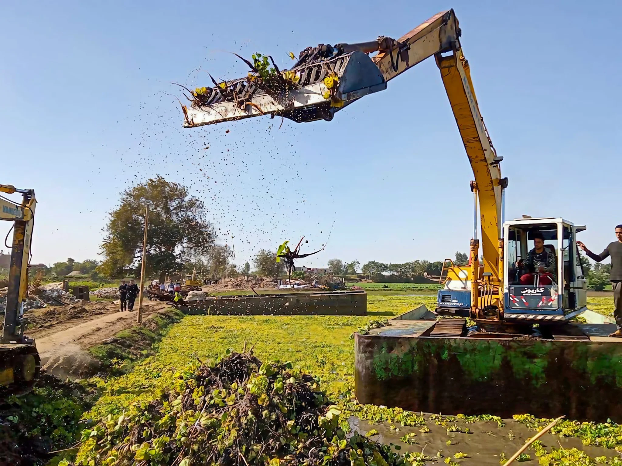 إزالة طريق مخالف بطول ٥٠٠ متر بالمجري المائي لفرع رشيد في إحدى قرى المنوفية..صور