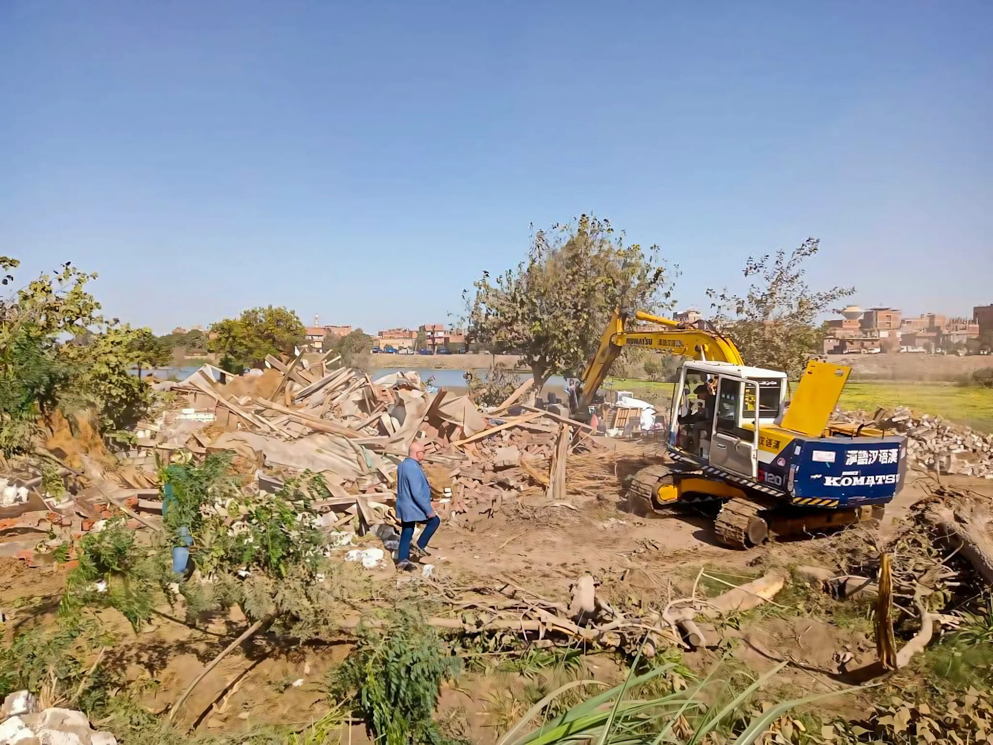 وتم تنفيذ إزاله للطريق بالكامل بطول ٥٠٠ متر من جسر نهر النيل وحتى الجزيرة الواقعة داخل المجرى، كما تم إزالة عدد (٨) مباني مخالفة على مسار الطريق، بتواجد كثيف للمعدات ( ٤ حفارات على صنادل – ٢ حفار على كاتينه – ٢ لودر)، بالإضافة لتوفير عدد (٣٠) قلاب من جانب محافظة المنوفية لنقل نواتج الردم خارج القطاع المائي، و وسط تواجد أمني كبير من مديرية أمن المنوفية لتأمين الحملة .