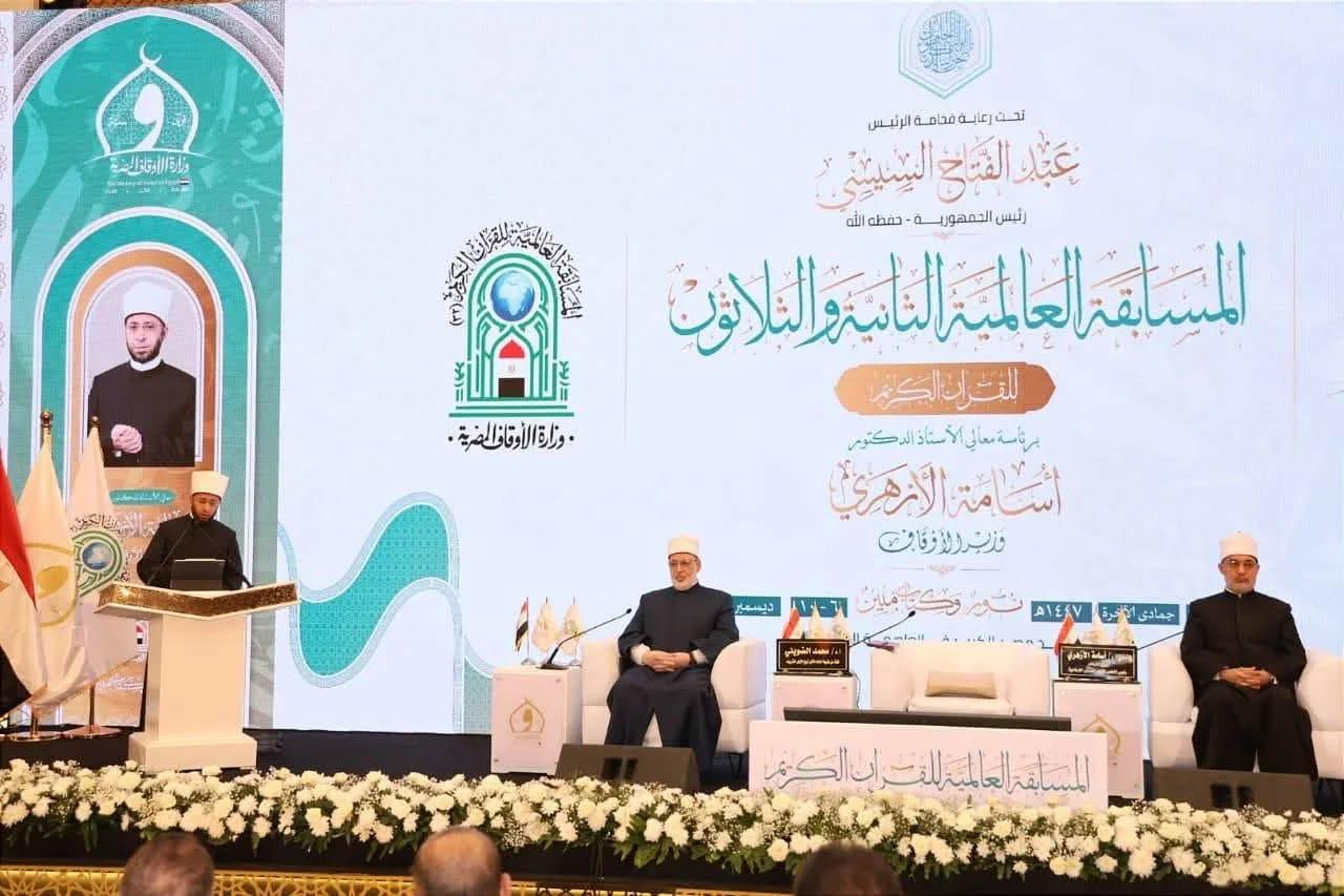 افتتح الدكتور أسامة الأزهري وزير الأوقاف، المسابقة العالمية للقرآن الكريم في دورتها الثانية والثلاثين، وذلك بمسجد مصر الكبير بالعاصمة الجديدة، برعاية كريمة من الرئيس عبد الفتاح السيسي ، رئيس الجمهورية، وسط حضور رفيع من كبار العلماء والقيادات الدينية والتنفيذية من داخل مصر وخارجها.