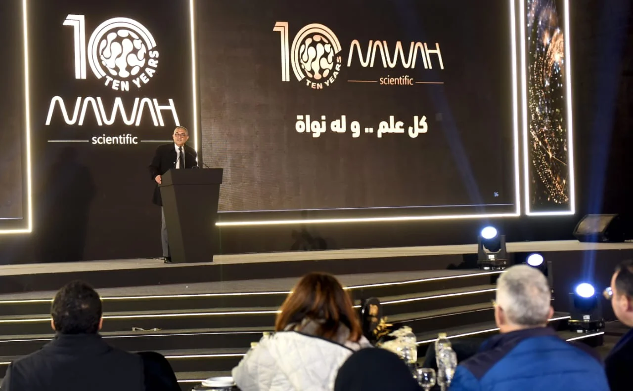وأعرب حسام هيبه الرئيس التنفيذى للهيئة العامة للاستثمار والمناطق الحرة عن سعادته وفخره بمشاركة هذه المناسبة المهمة، مشيداً بما حققته الشركة من نجاحات محلية ودولية. وأكد أن “نَوَاه العلمية” لم تكتف على مدار عشر سنوات بالعمل داخل أسوار المختبر، بل عملت على بناء قاطرة حقيقية تدفع عجلة البحث العلمي وتخدم الصناعة في مصر والمنطقة، مشيراً إلى أن مسيرتها تمثل برهاناً حياً على أن البحث العلمي، حين تُهيأ له البيئة الخصبة ويُستثمر فيه بذكاء، يصبح أقوى محرك للاقتصاد وأصدق خادم للمجتمع.