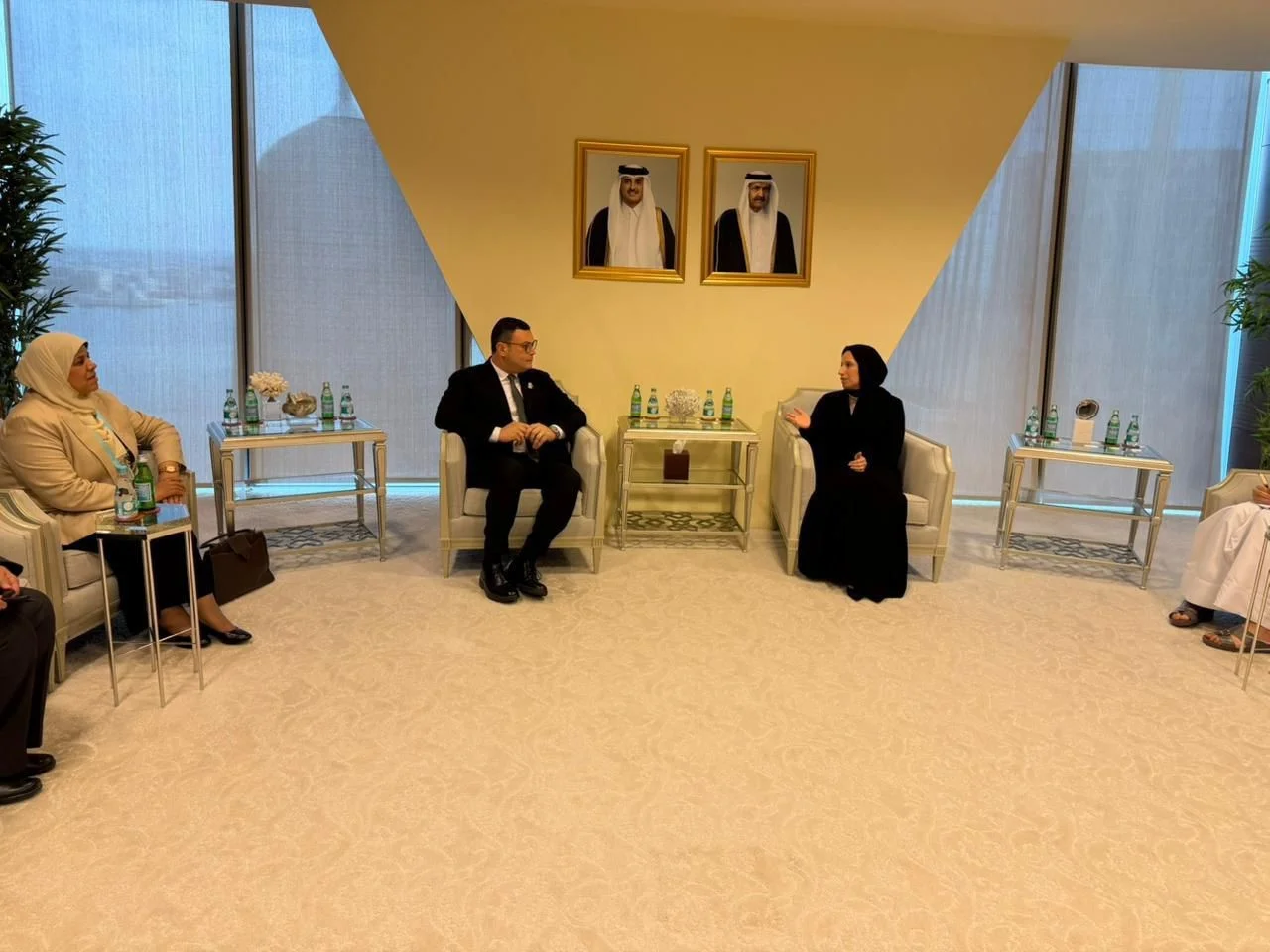 التقي المهندس شريف الشربيني، وزير الإسكان والمرافق والمجتمعات العمرانية، بثينة بنت علي الجبر النعيمي – وزيرة التنمية الاجتماعية والأسرة، لبحث تعزيز أوجه التعاون المشترك وجهود مصر وقطر في إحداث تنمية عمرانية وتوفير السكن الملائم للجميع، وذلك خلال فعاليات المنتدي الوزاري العربي السادس للإسكان والتنمية الحضرية المقام على هامش الدورة الـ42 لمجلس وزراء الإسكان والتعمير العرب والمنعقد بالدوحة بدولة قطر الشقيقة، وذلك بحضور المهندسة نفيسة هاشم وكيل وزارة الإسكان للمرافق ، ومجموعة من مسؤولي وزارتي الإسكان والتنمية الاجتماعية بمصر وقطر.