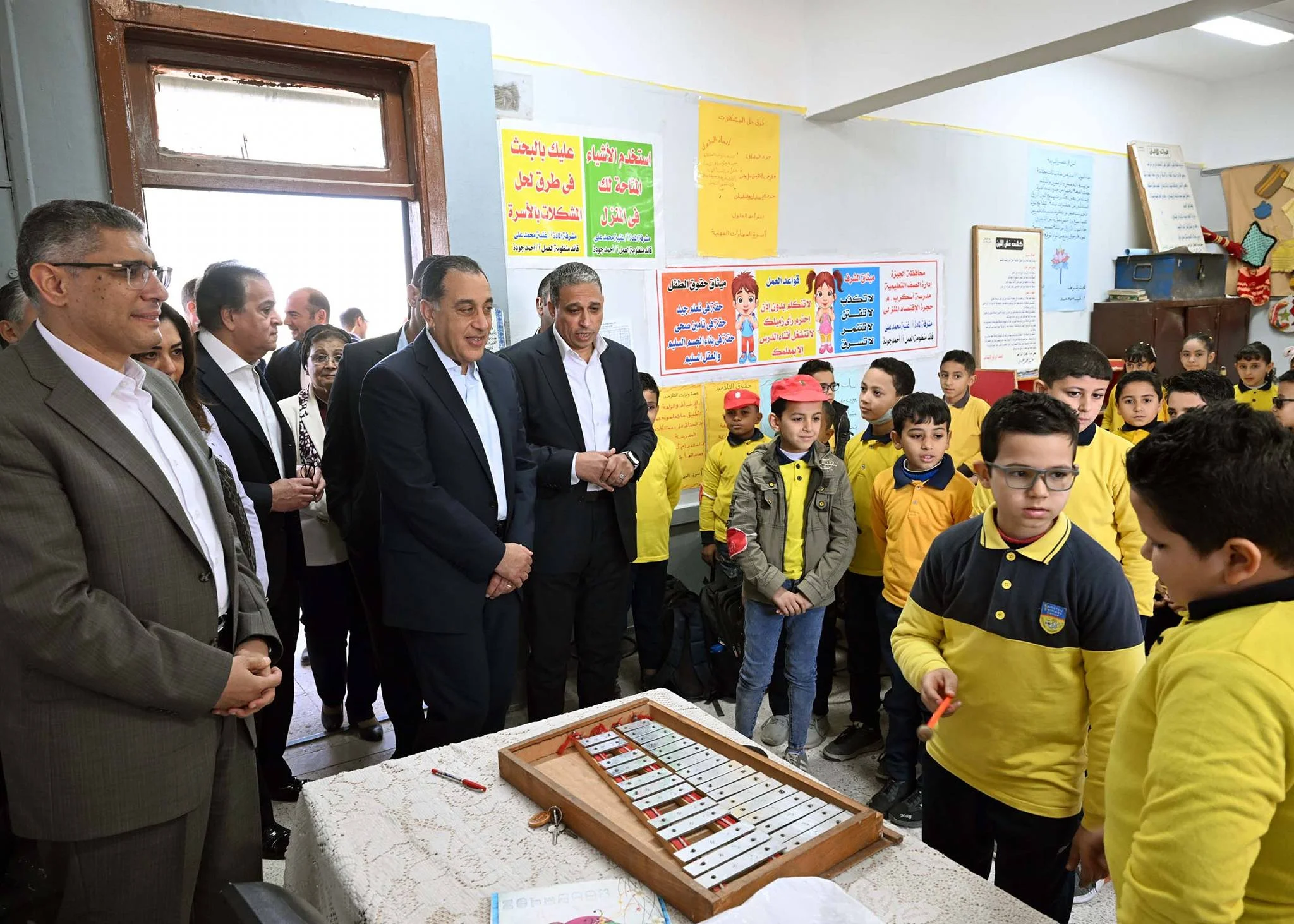 كما تفقد الدكتور مصطفى مدبولي أحد فصول حصة المجالات، واستمع لحصة موسيقي للصف الرابع الابتدائي، تم أجرى حوارًا أبويًا مع الطلبة.