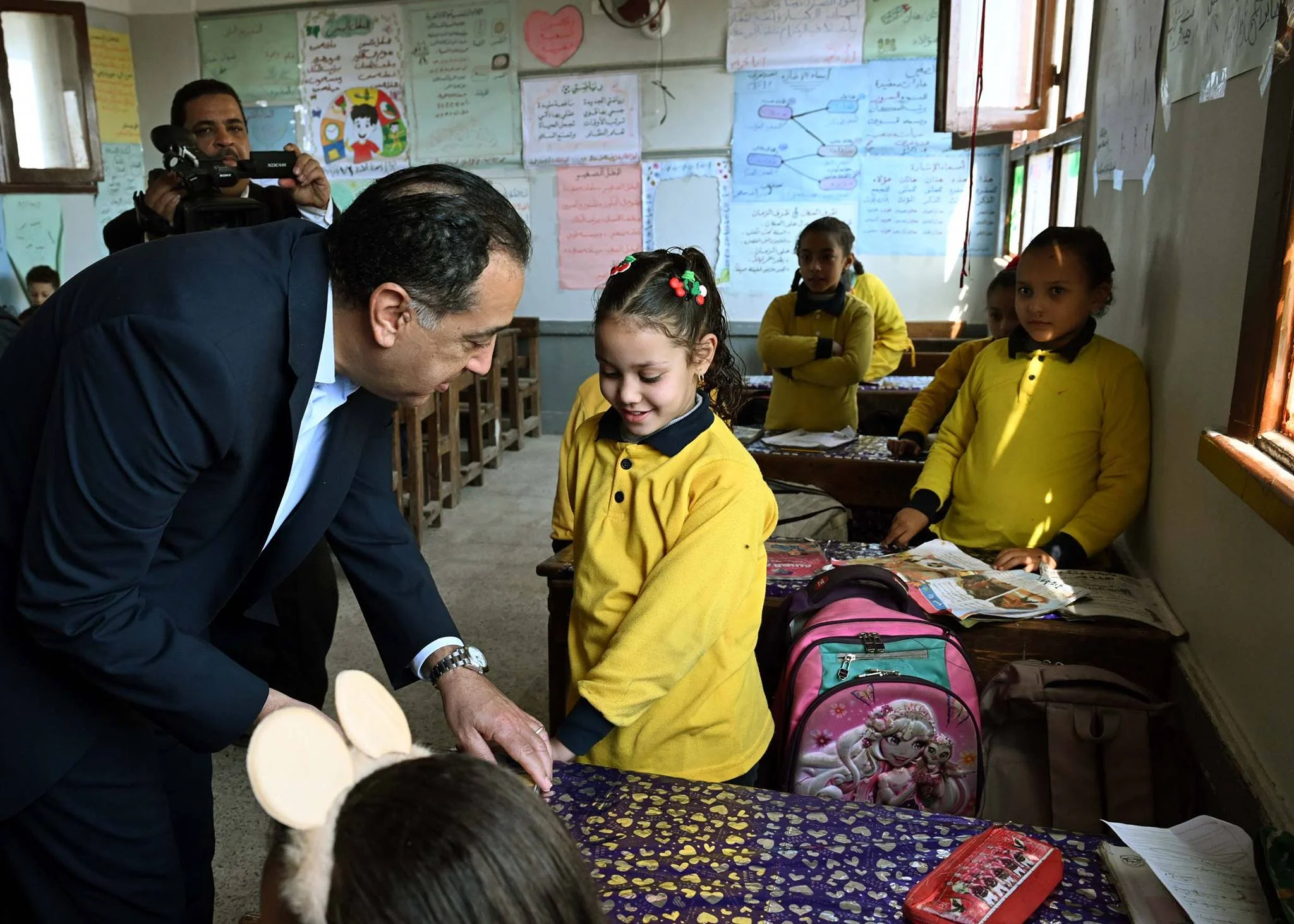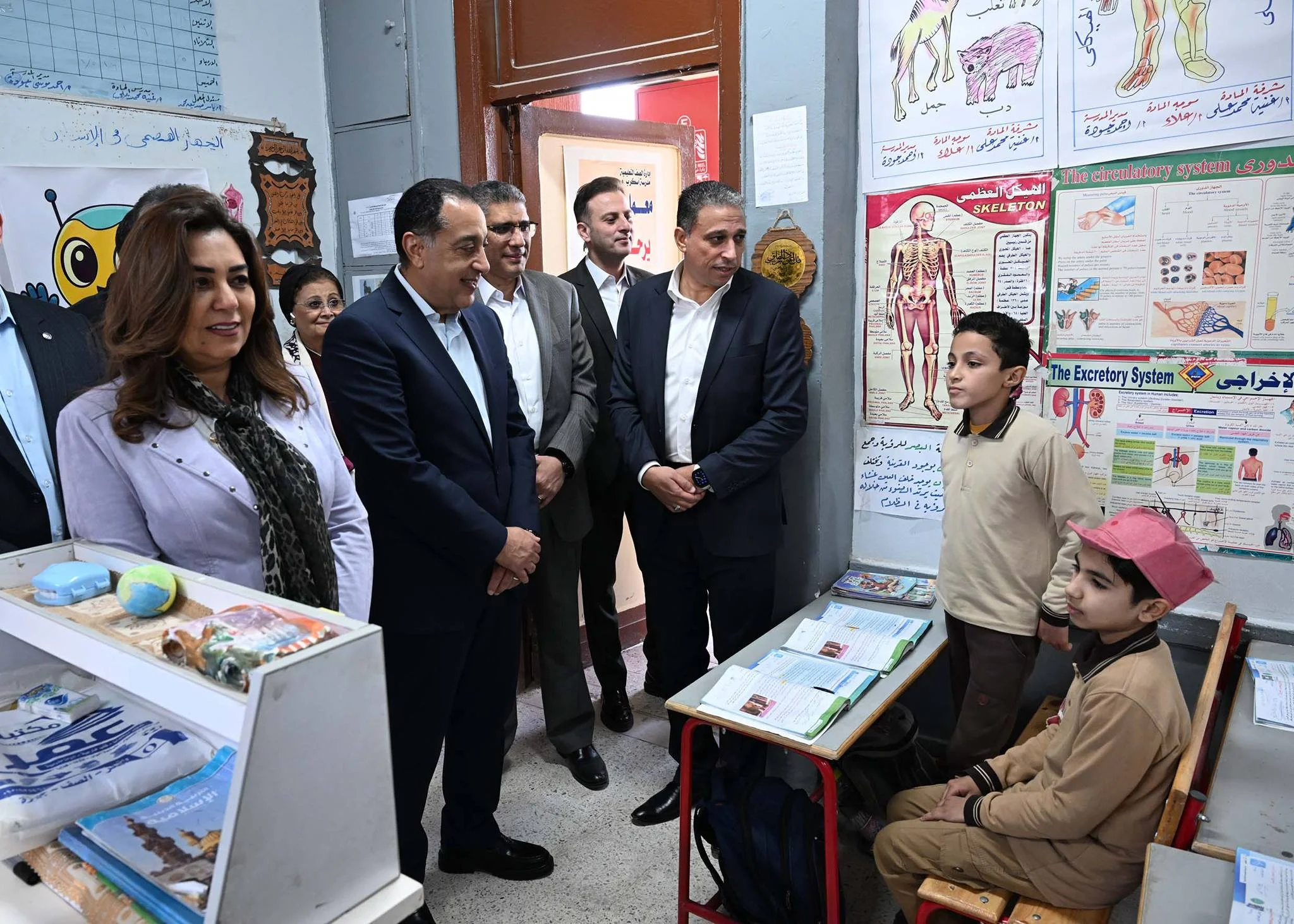 وحرص الدكتور مصطفى مدبولي على حضور إحدى الحصص الدراسية للصف الأول الابتدائي، حيث أعرب للطلاب عن سعادته للاستماع إلى الشرح الملقى عليهم حول فصول السنة، من إحدى الطالبات، وفي غضون ذلك استفسر من مدرسة الفصل حول نسب الحضور والغياب، ومدى استيعاب الطلاب للمقررات الدراسية، كما طلب من إحدى الطالبات قراءة نص من كتاب اللغة العربية، حيث أشاد بها رئيس الوزراء وبنطقها السليم لحروف اللغة، وتمنى لها التوفيق.