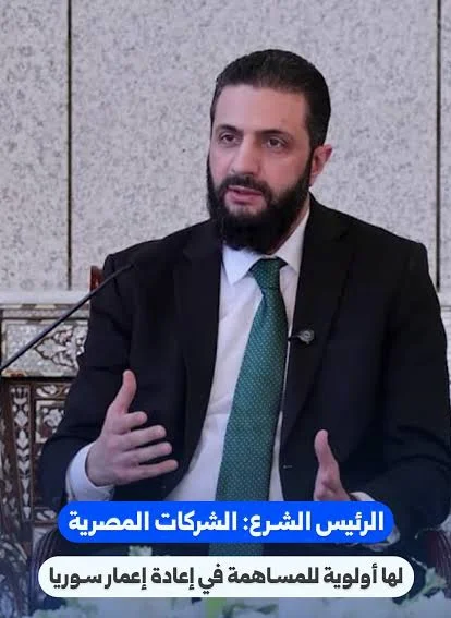 (لقاء الإخوة)..الرئيس أحمد الشرع:الشركات المصرية هي الأَولى بالمشاركة في إعادة إعمار سوريا
