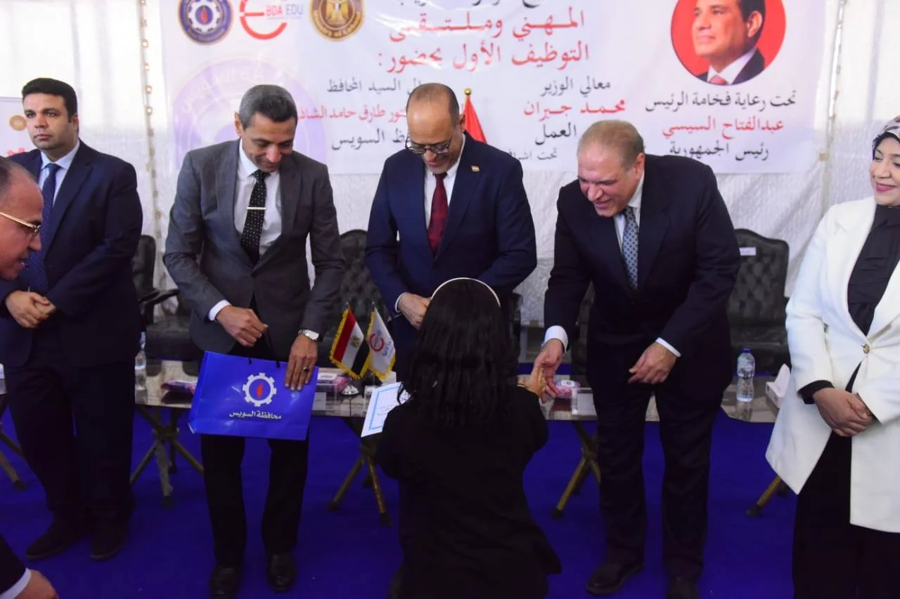 افتتح وزير العمل محمد جبران، اليوم الأحد، يرافقه اللواء أركان حرب الدكتور طارق الشاذلي، محافظ السويس، الملتقى التوظيفي الذي نظمته وزارة العمل، بمركز التدريب المهني بمحافظة السويس، بمشاركة 26 شركة من كبرى الشركات العاملة بالمحافظة، وذلك لتوفير نحو 1700 فرصة عمل حقيقية وجديدة لشباب السويس، في عدد من القطاعات الصناعية والخدمية، في إطار دعم الشراكة مع القطاع الخاص باعتبارها حجر الأساس لمواجهة البطالة وتحقيق الاستقرار الوظيفي.