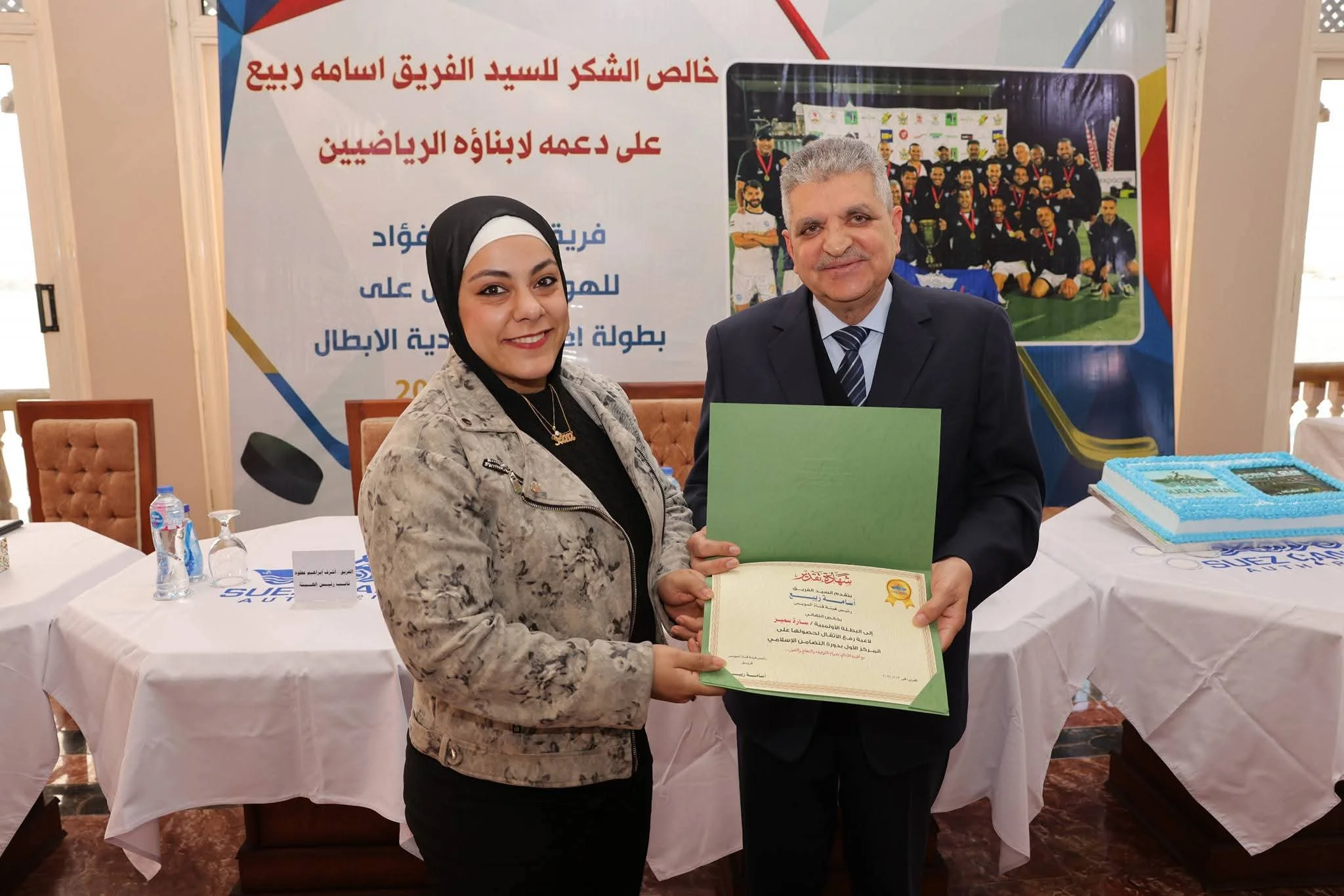 الفريق أسامة ربيع يكرم فريق الهوكي بنادي بورفؤاد الرياضي بعد تتويجه بطل إفريقيا للأندية