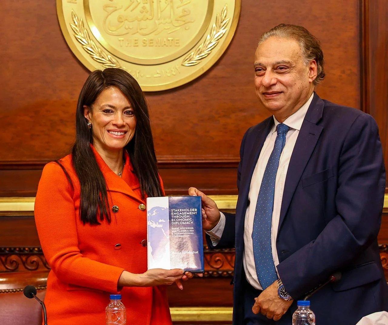 رانيا المشاط تهدي لجنة الشؤون الخارجية بمجلس الشيوخ نسخة من كتابها الدبلوماسية الاقتصادية لتعزيز التعاون الدولي